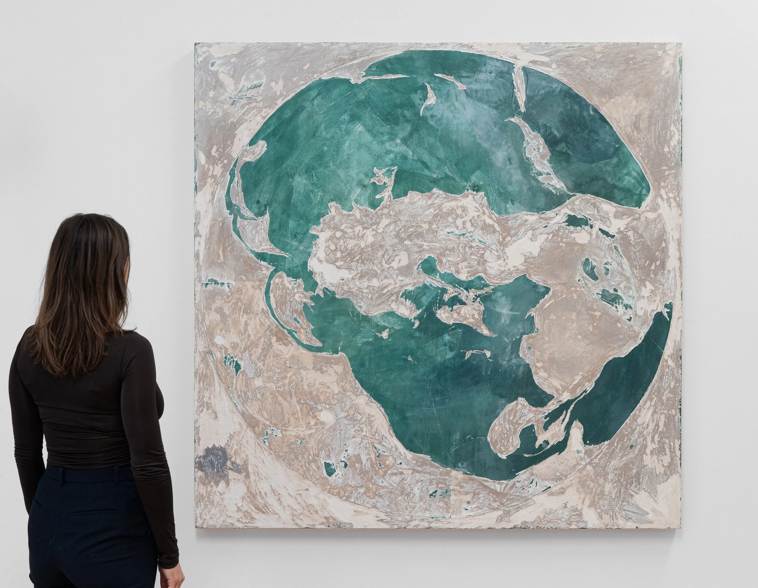 TERRA (Hope), 2025, Chaux, sable, poudre de marbre et pigments sur panneau de bois, 200 x 200 cm